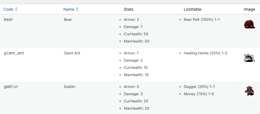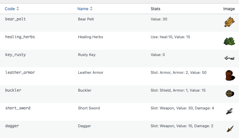 To get you jumpstarted, some items and creatures are already created when installing the demo content.